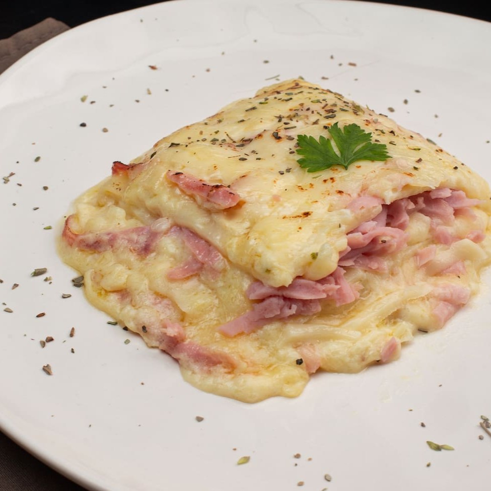 Deliciosa lasanha com 125g de camarão fresco, molho cremoso de camarão e queijo gratinado, um prato sofisticado e irresistível.