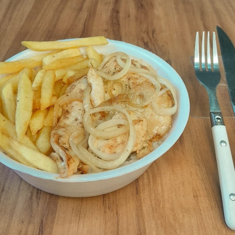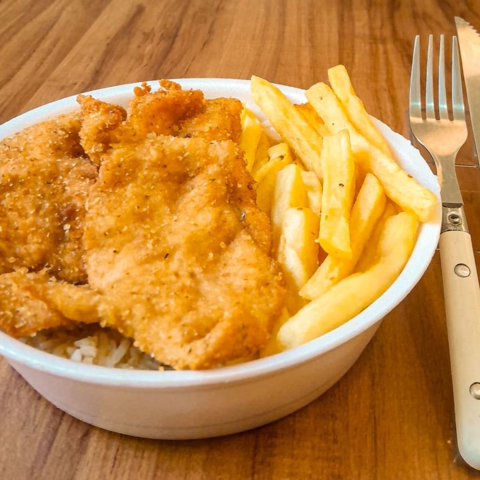 Arroz branquinho, feijão caseiro e batata frita crocante. Uma combinação simples e saborosa!