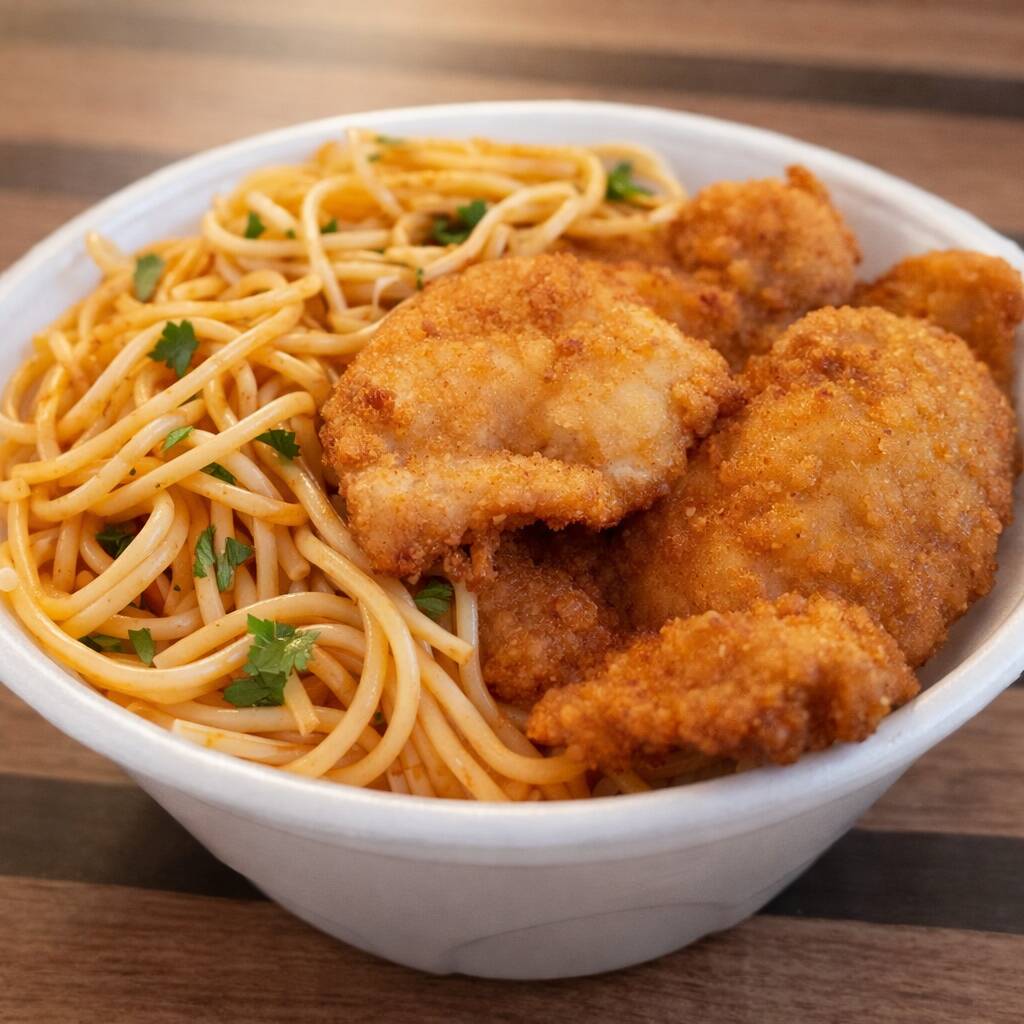 Saboroso Peito De Frango A Milanesa Com Macarrão Espaguete