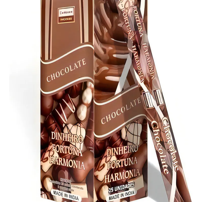Aroma: Chocolate Propósito: Dinheiro, fortuna e harmonia Conteúdo 1 caixinha de incensos Darshan com 8 varetas cada. Origem: Índia.