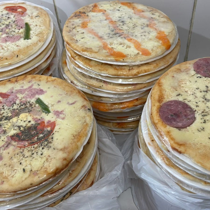 Massa leve, Fininha, recheio equilibrado e excelente custo-benefício . Ideal para lanche rápido , família ou revenda . 🍕 PIZZAS SALGADAS : Mussarela, Calabresa , Portuguesa, 3 Queijos, Frango com Catupiry, Calabresa com Cheddar, Presunto, Presunto com Catupiry, Bacon com Ovos . 🍫PIZZAS DOCES: Chocolate com M&M Romeu e Julieta Chocolate com Granulado Beijinho (colocar sabor na observação)