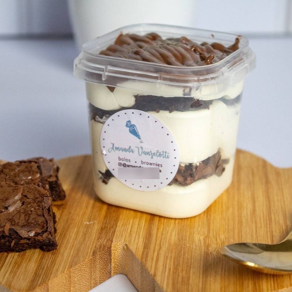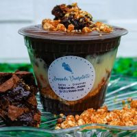 Cremosinho de chocolate meio amargo crocante de amendoim e brownie. Copo 250ml.
