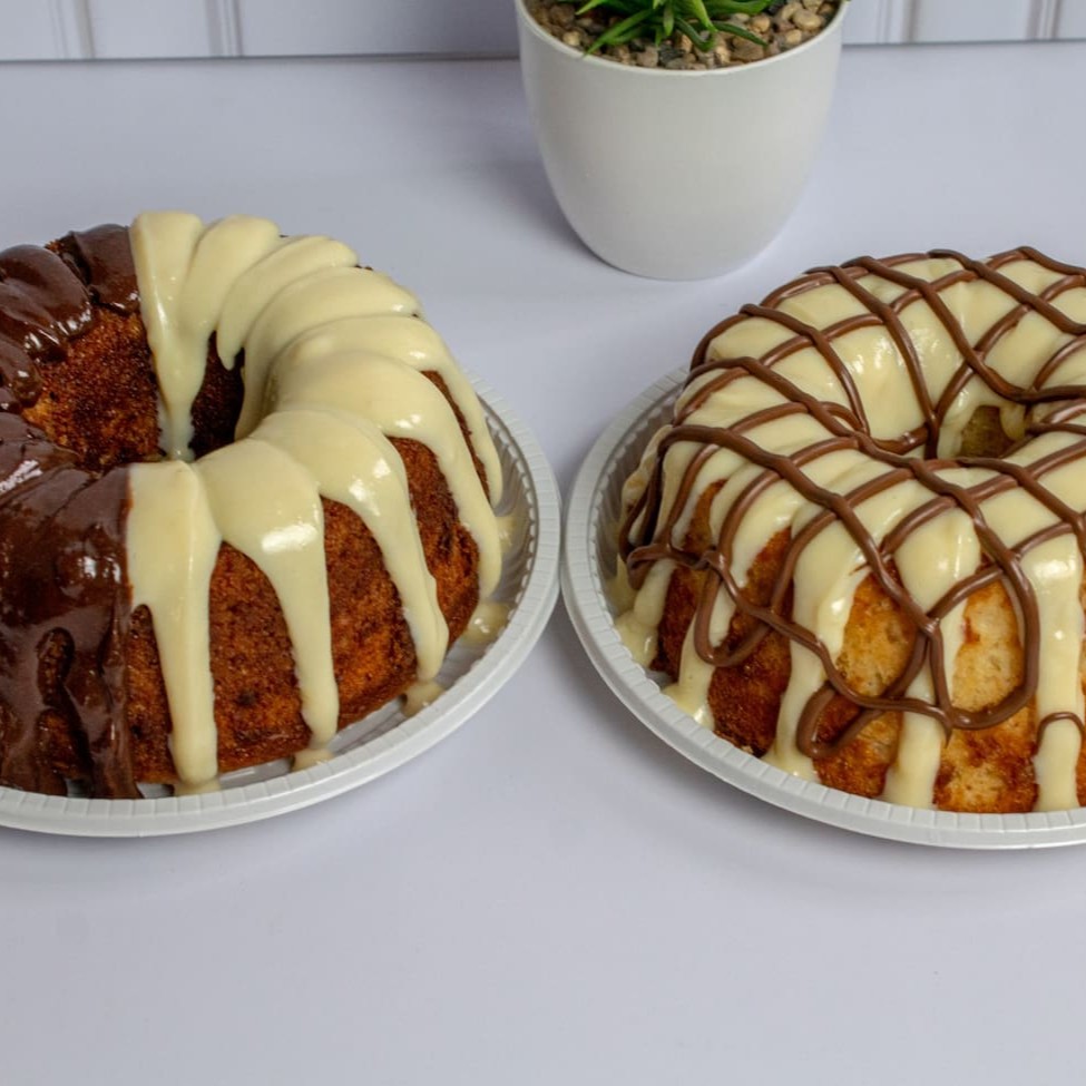 Massa fofinha e molhadinha nos sabores branco e chocolate, com calda de Ninho e chocolate.