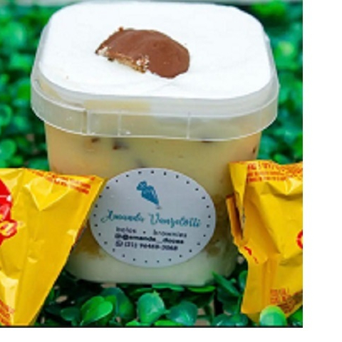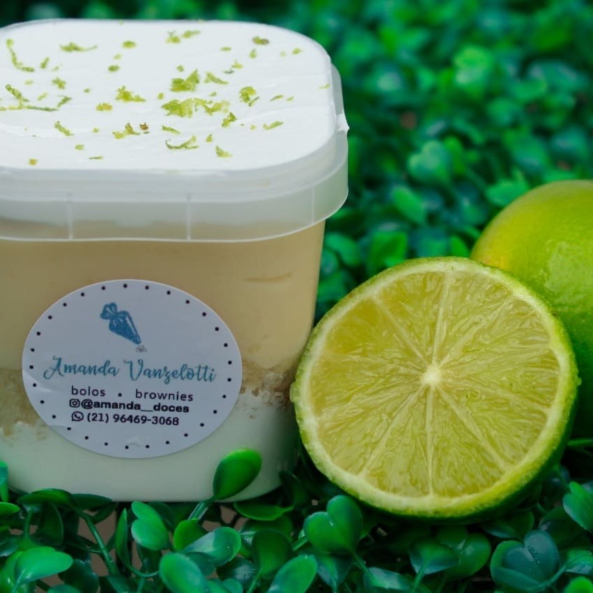 Massa de biscoito bem molhadinha, creme de limão e mousse de Ninho com raspa de limão. Pote 250ml