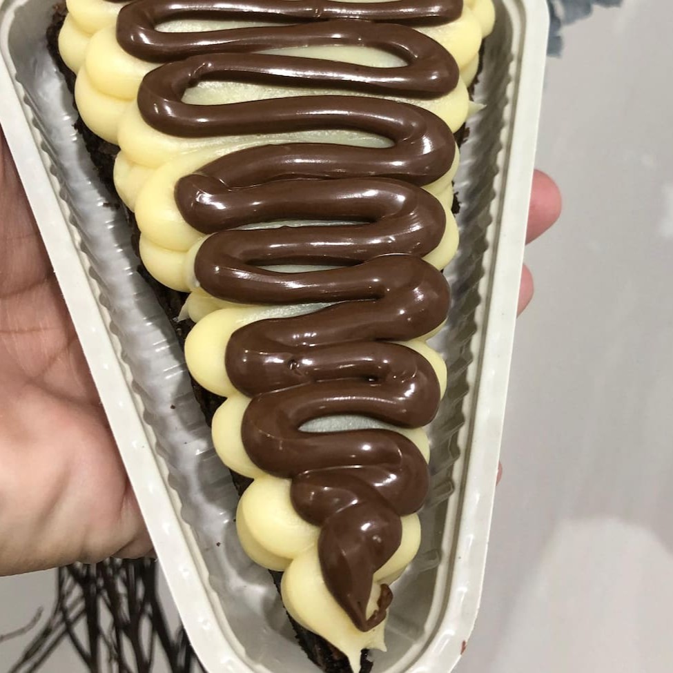 Desfrute desta irresistível fatia de brownie, uma verdadeira obra-prima da confeitaria. Cada mordida revela um brownie intensamente macio e úmido. Acrescentamos uma generosa camada do nosso delicioso creme de leite Ninho. Para finalizar, uma luxuosa cobertura de Nutella é aplicada.