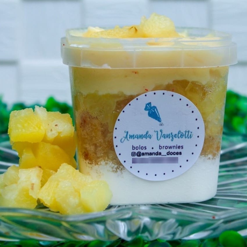 Delicie-se com o nosso Bolo no Pote - Abacaxi com Coco, uma das estrelas da categoria 'Aquele Bolo de Pote'. Este doce é cuidadosamente montado com uma camada de mousse de Ninho, seguida por uma camada de bolo amanteigado e aveludado. A combinação é elevada ao próximo nível com a adição de uma geleia de abacaxi feita a partir de frutas frescas, proporcionando um toque cítrico e refrescante. Finali