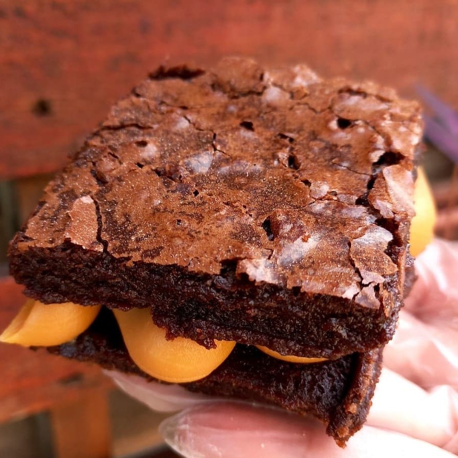 Um delicioso Brownie re cheado da sua escolha em um tamanho de 6x6. Em três opções de sabores ninho, doce de leite ou brigadeiro.