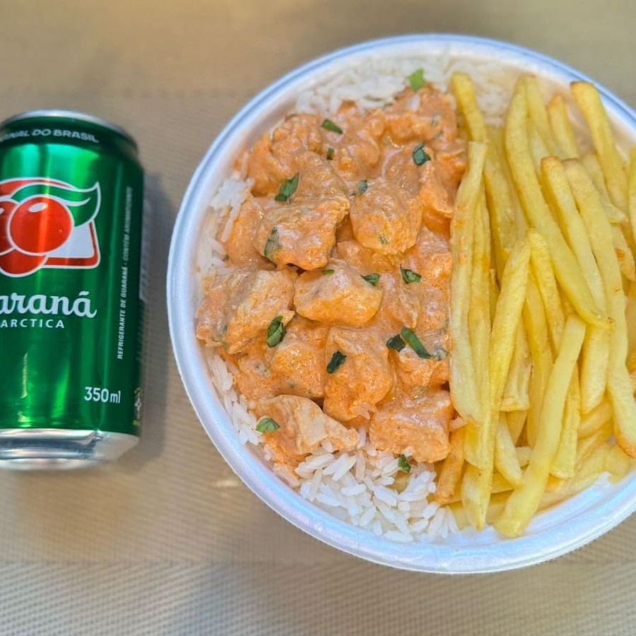 Strogonoff Frango & Fritas + Lata Guaraná + R$ 14,99 Leve Outra Marmitex