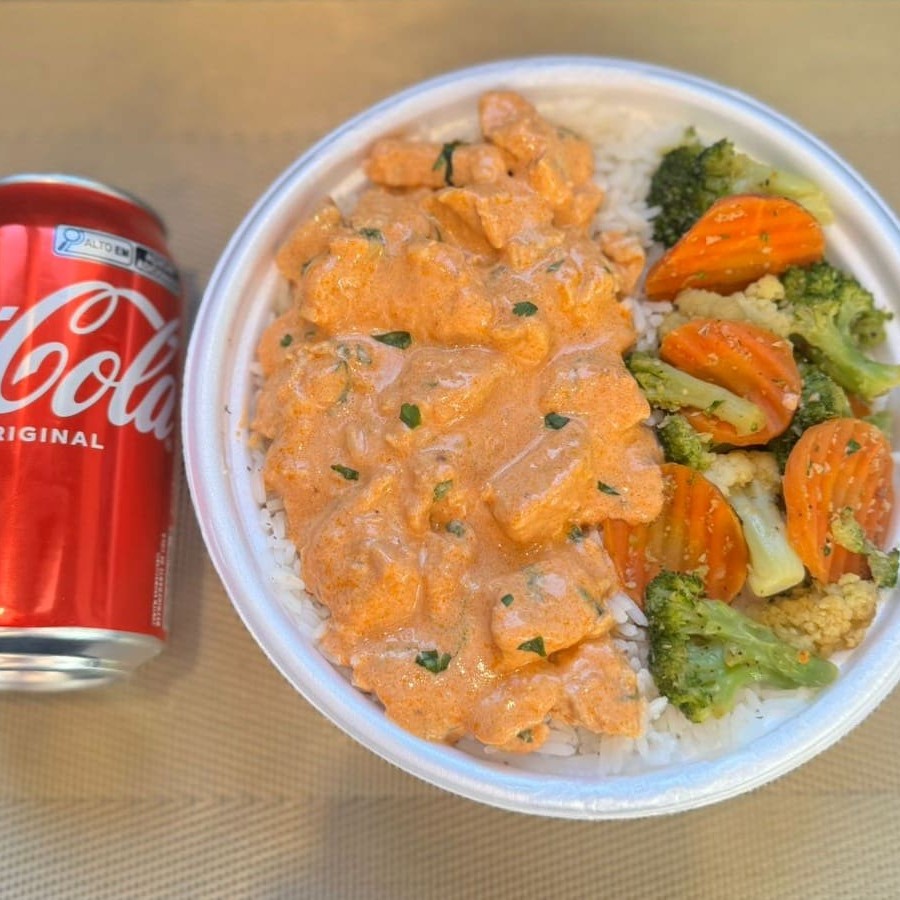 Strogonoff Frango & Legumes + Lata Coca Normal + R$ 14,99 Leve Outra Marmitex Copiar