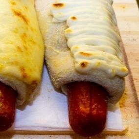 Massa especial da casa, molho artesanal de cachorro quente, mussarela, salsicha e finalização com batata palha extra fina.