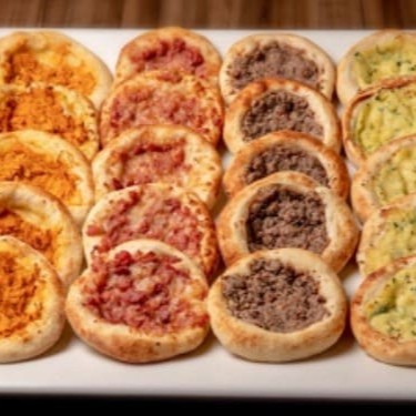 5 esfihas de carne + 5 esfihas de frango + 5 esfihas de calabresa + 5 esfihas de queijo