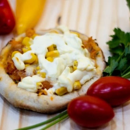 Massa especial da casa, frango desfiado com tomate, cebola, temperos da casa e cream cheese.