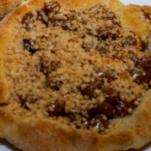 Massa especial da casa, queijo minas, goiabada e chocolate branco gratinado.