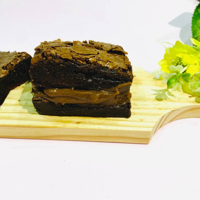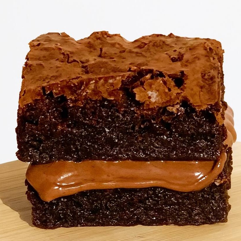 Brownie artesanal com interior super molhadinho, casquinha crocante por fora e uma generosa camada de Nutella Original. ——-tags——