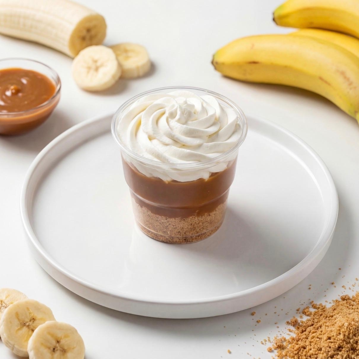 Divina banoffee feita com base crocante de biscoito amanteigado, camada generosa de Doce de Leite Original, fatias frescas de banana madura. Finalizada chantilly leve e aerado.