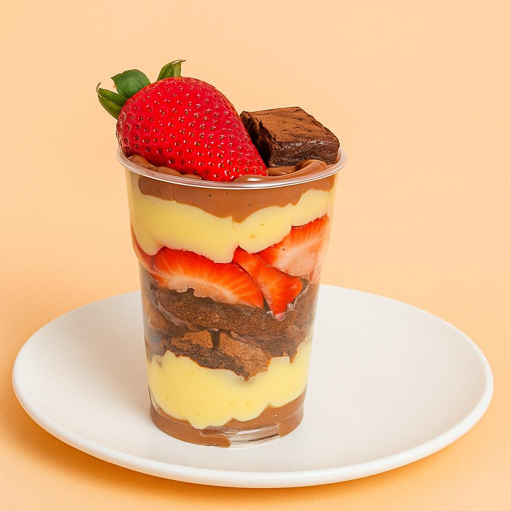 Camadas intensas de prazer: morango suculento, brownie fofinho, Nutella cremosa, Ninho apaixonante e o toque perfeito do chocolate. Uma verdadeira tentação!