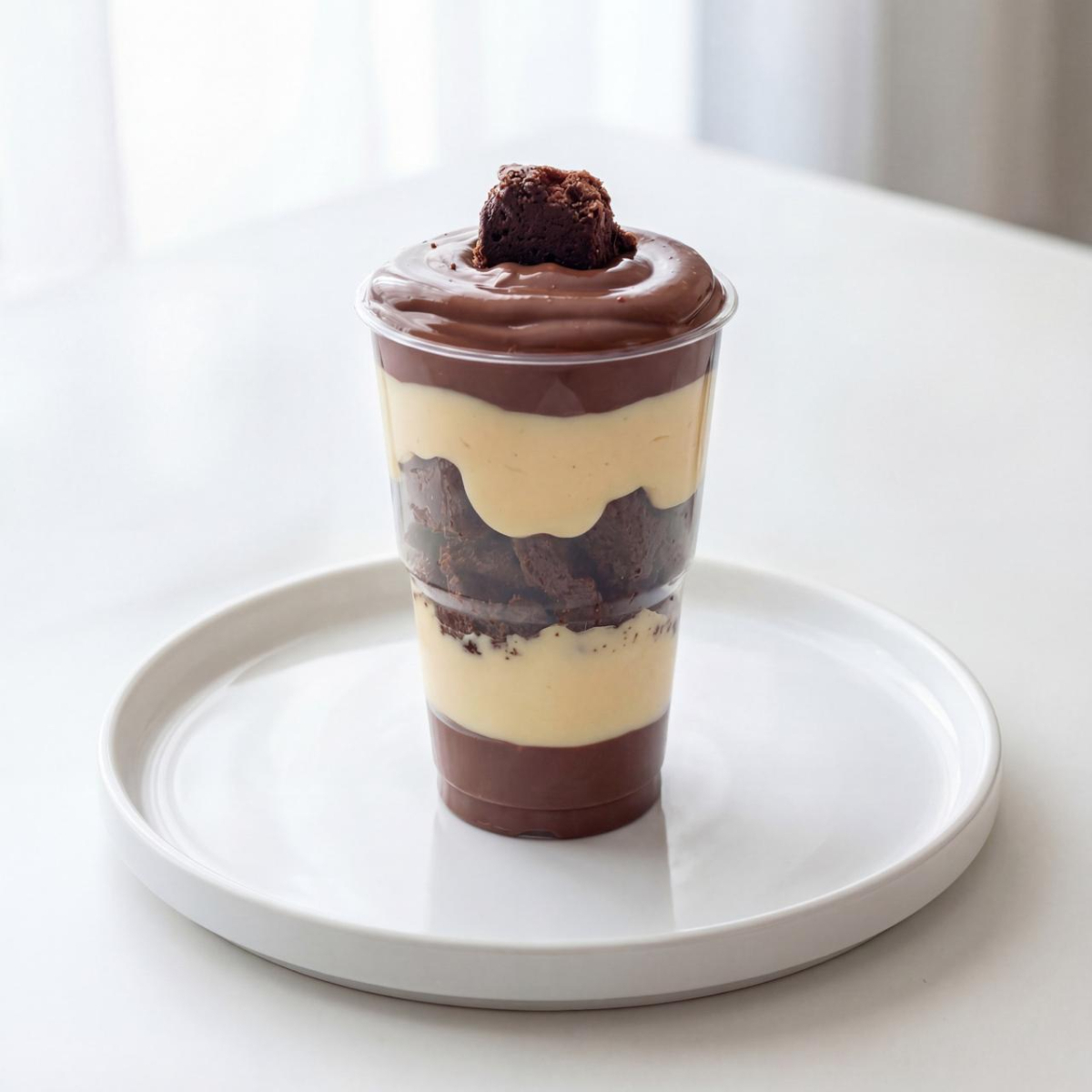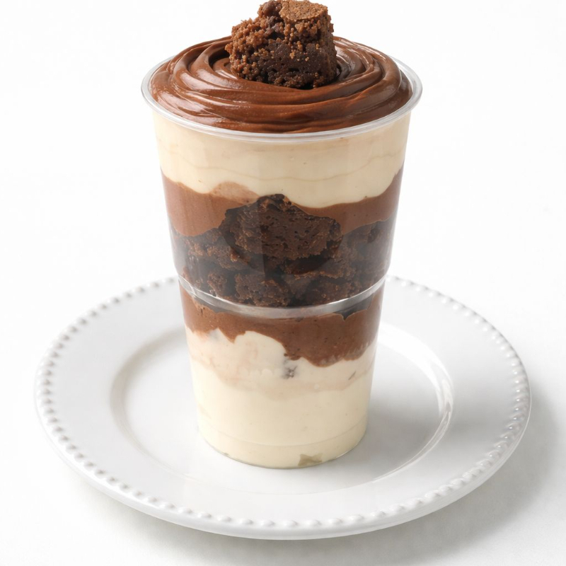 Dueto perfeito. Nosso Copo Brownie combina o brownie chocolatudo, com um delicioso creme de leite Ninho e um generoso toque de brigadeiro cremoso. Feito com ingredientes selecionados para derreter na boca. (300ml)