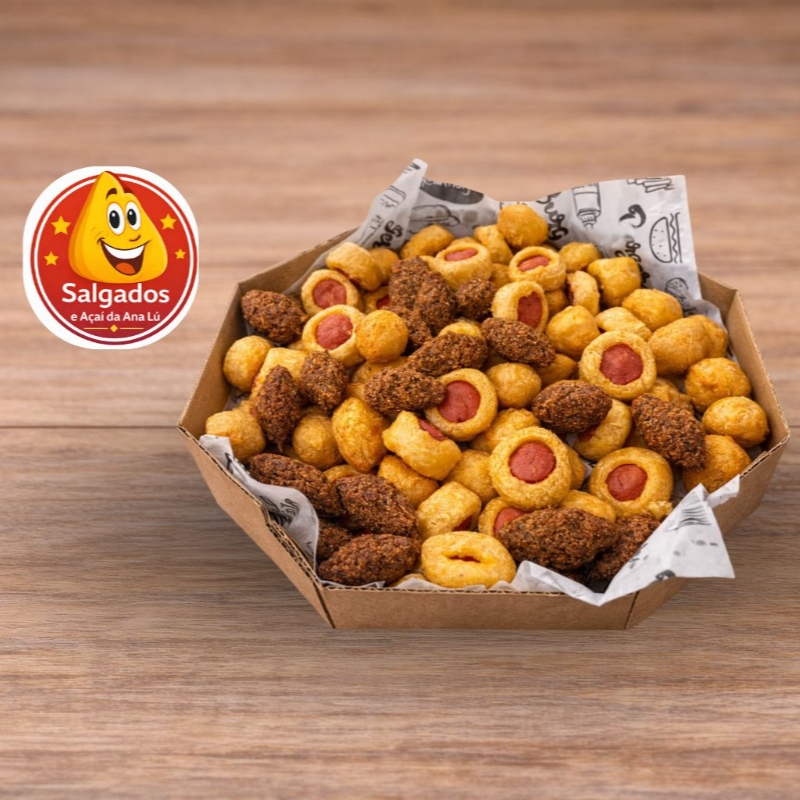 Serve 4 pessoas (10salg/pessoa). Salgadinhos tamanho festa (aprox. 14g a 18g por unidade). Produto industrializado massa e recheio previamente cozidos, mantidos congelados a -18c e fritos no momento do pedido entre 180c e 200c. Pode conter glúten, leite, soja e derivados. Produzido em ambiente que manipula carnes, frutos do mar e outros alergênicos. Podem conter ou apresentar traços de: Glúten (trigo), Leite e derivados , Soja, Ovos, Carne bovina, Carne suína, Frango e Camarão. Pessoas com restrições alimentares ou alergias devem se informar antes de realizar o pedido. Obs: Salgados vão na caixa ou isopor, o vapor é natural, mas se deixar abafado dentro da caixa, o salgado fica úmido e murcho. Abra a caixa assim que receber! Palavras chave: salgadinhos, coxinha, kibe, fritos na hora, cupom desconto, entrega grátis.