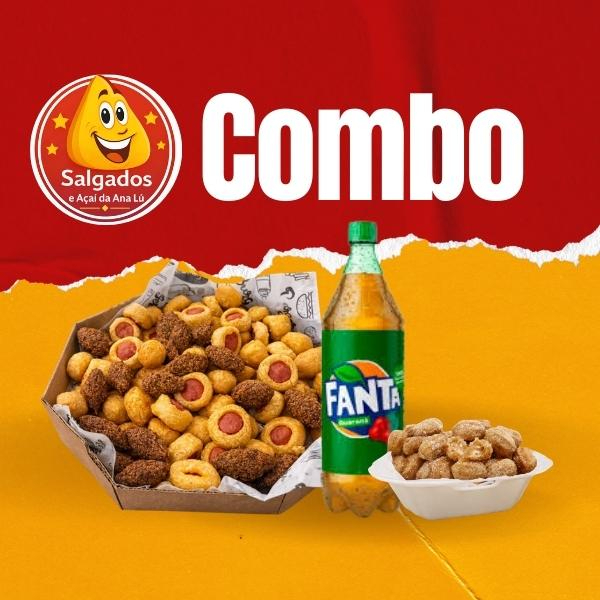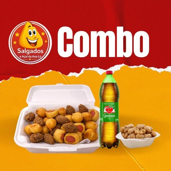 Combo ideal pra aniversário ("é só um bolinho") mesversário e comemorações com até 20 pessoas (10salg/pessoa) + mini churros recheado com doce de leite e finalizado com açúcar e canela + bebida gelada. Obs: Salgados vão na caixa ou isopor, o vapor é natural, mas se deixar abafado dentro da caixa, o salgado fica úmido e murcho. Abra a caixa assim que receber! Salgadinhos tamanho festa (aprox. 14g a 18g por unidade). Produto industrializado massa e recheio previamente cozidos, mantidos congelados a -18c e fritos no momento do pedido entre 180c e 200c. Pode conter glúten, leite, soja e derivados. Produzido em ambiente que manipula carnes, frutos do mar e outros alergênicos. Podem conter ou apresentar traços de: Glúten (trigo), Leite e derivados , Soja, Ovos, Carne bovina, Carne suína, Frango e Camarão. Pessoas com restrições alimentares ou alergias devem se informar antes de realizar o pedido. Obs: Salgados vão na caixa ou isopor, o vapor é natural, mas se deixar abafado dentro da caixa, o salgado fica úmido e murcho. Abra a caixa assim que receber! Palavras chave: salgadinhos, coxinha, kibe, fritos na hora, cupom desconto, entrega grátis.