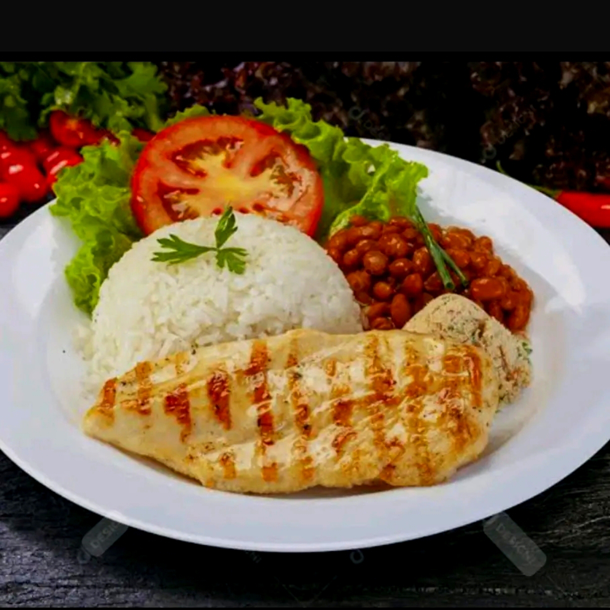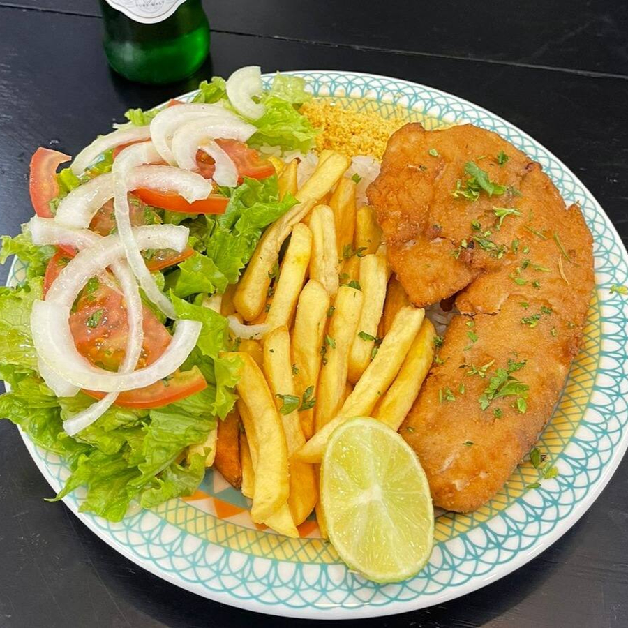 File de Frango C/ Fritas, Arroz, Feijão, Salada