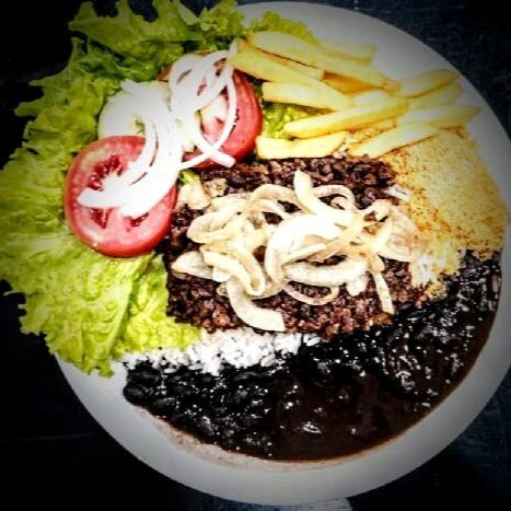 Picadinho Carioca - Carne, Ovo Frito, Arroz, Feijão e Farofa.