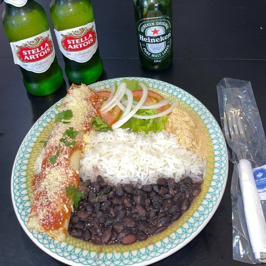 Arroz, Feijão, Ovo Frito, Salada e Farofa