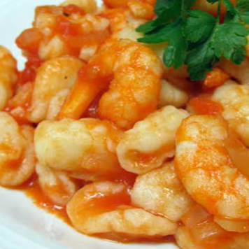 Nhoque Ao Molho De Camarão Coberto Com Queijo Parmesão Ralado