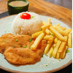 File de Frango C/ Fritas, Arroz, Feijão, Salada