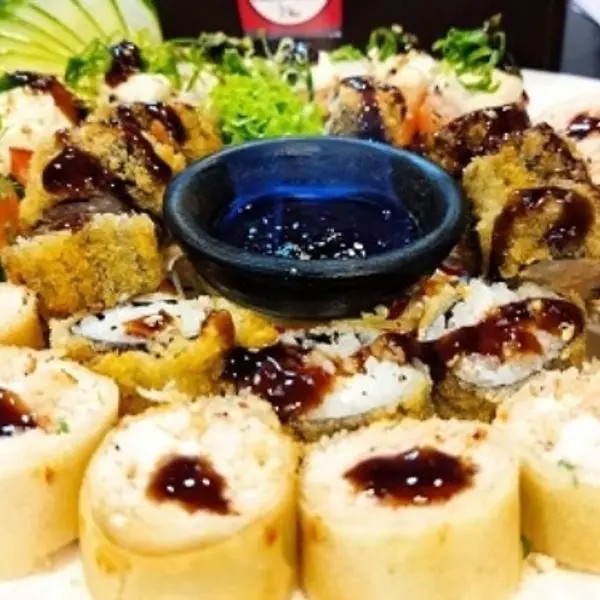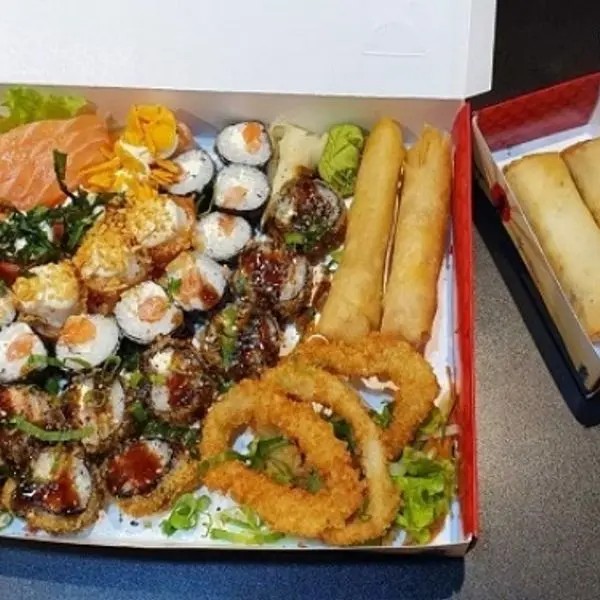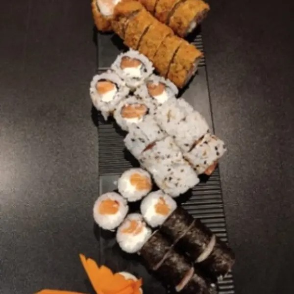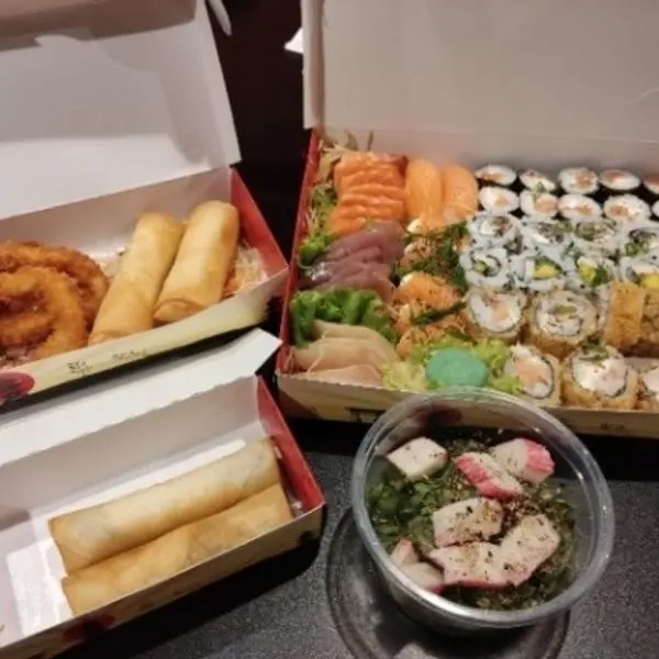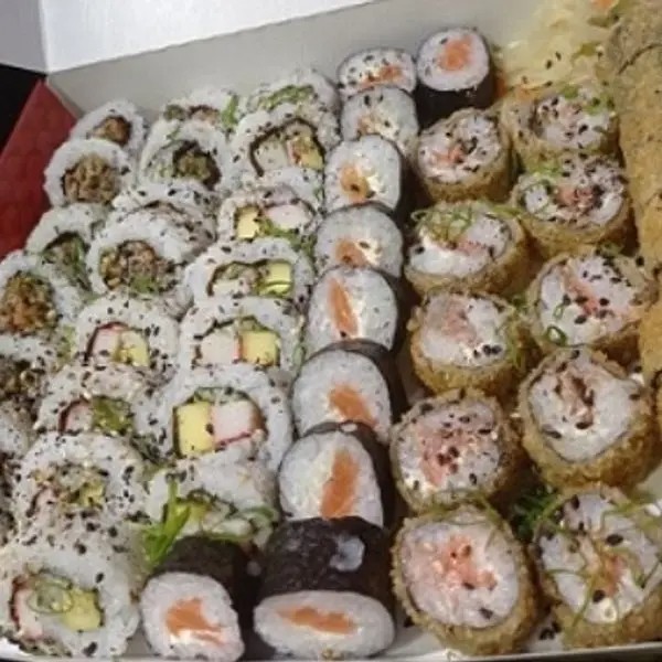 10 Hot Filadélfia 10 Filadélfia 8 joe ( alho, couve , Doritos) 5 sashimi de salmão 1 dupla de harumaki queijo 1 dupla de harumaki Romeu e Julieta 3 anéis de lula
