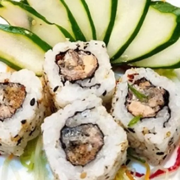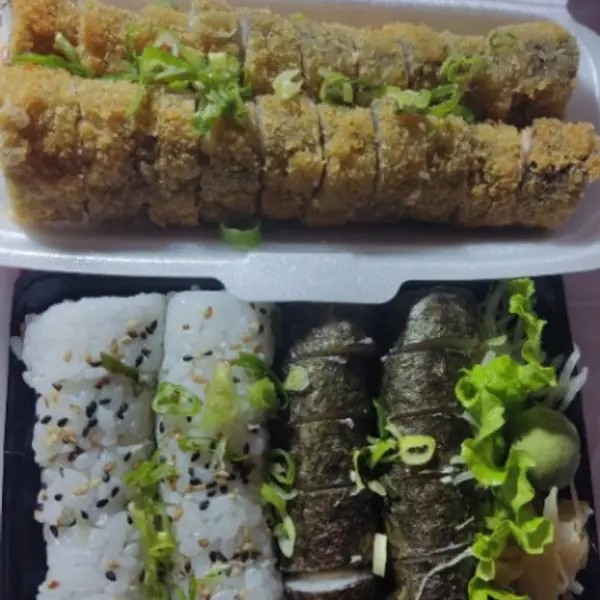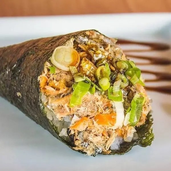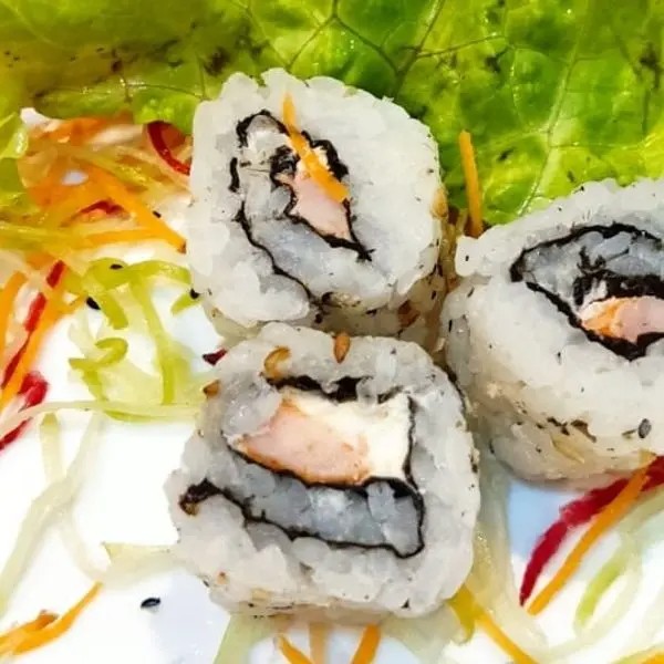 Alga, arroz, salmão, atum, cheddar, cream cheese e mostarda especial.