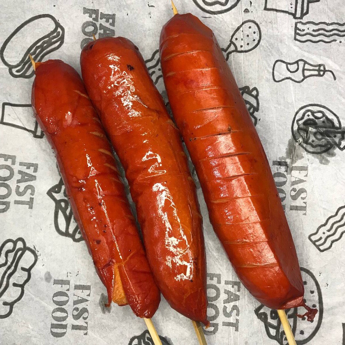 Pão, linguiça, tomate, cebola, milho, ketchup, mostarda, maionese, queijo ralado, batata palha, ovo de codorna e azeitona.