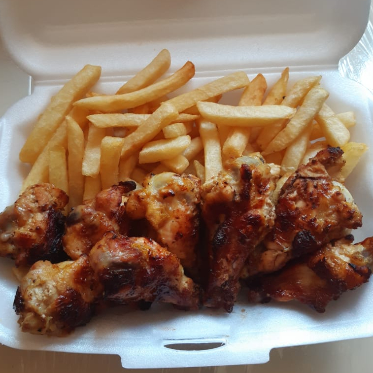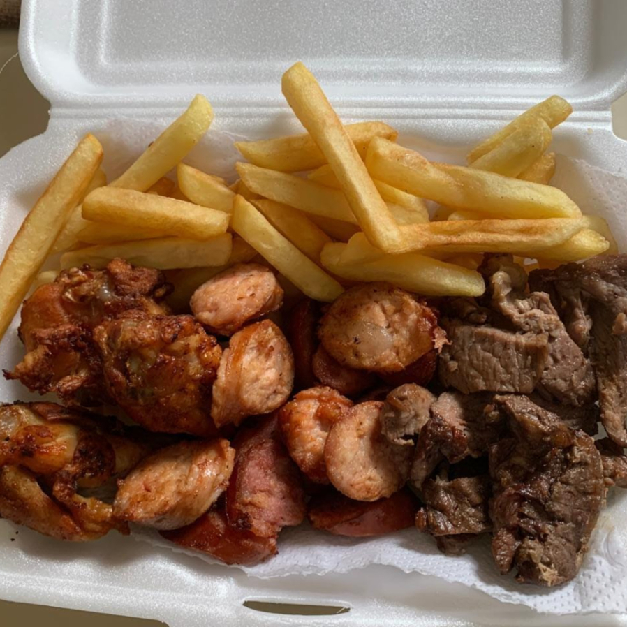 Porção de Drumet, Linguiça suina e de frango e alcatra com batata- fritas