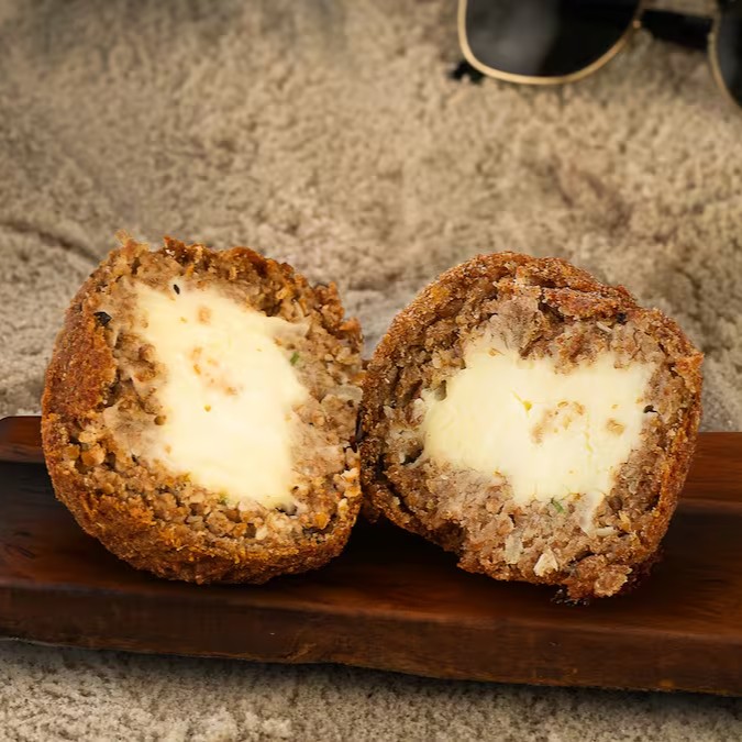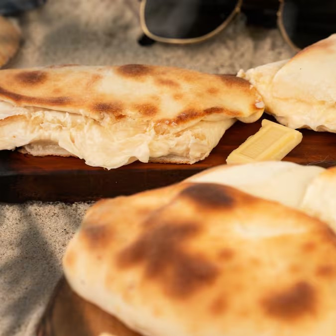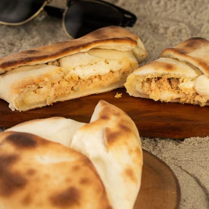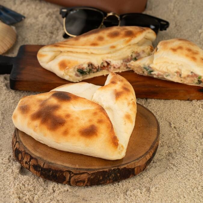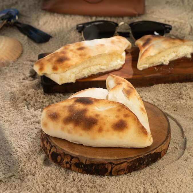 Esfiha recheada com uma mistura cremosa de queijos, perfeita para os amantes de queijo.