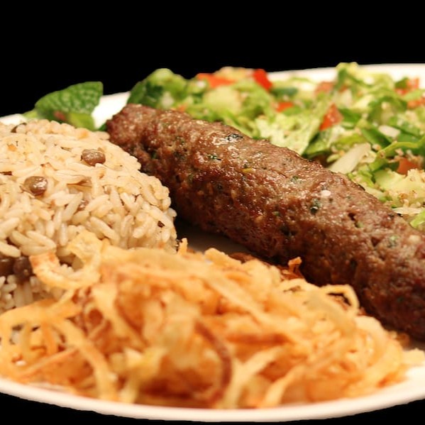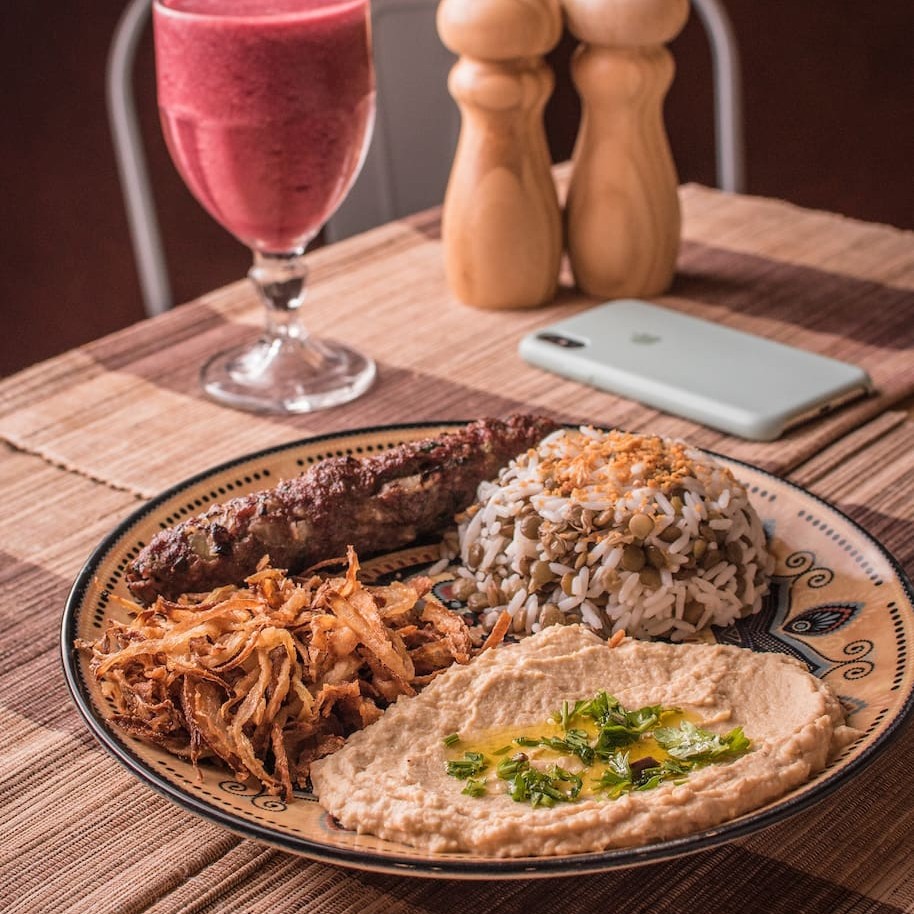 7. Arroz Com Lentilha + Kafta + Hummus Tharine
