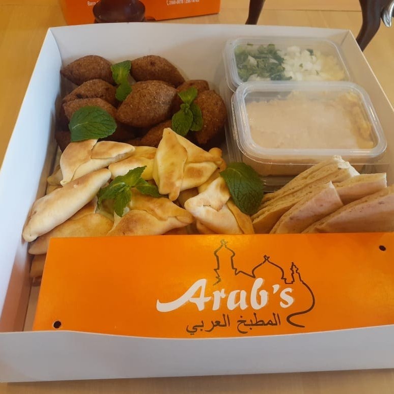 4 Esfihas , 4 Quibes, Pasta hummus Tharine 150grs, Tabule 150 Grs, 2 Kaftas, 4 Pães Arabe