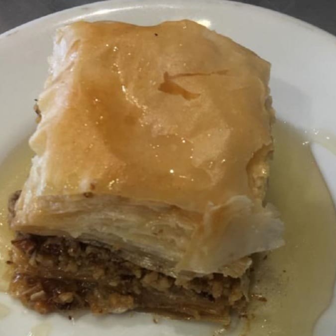 Delicioso doce foleado com mel e nozes