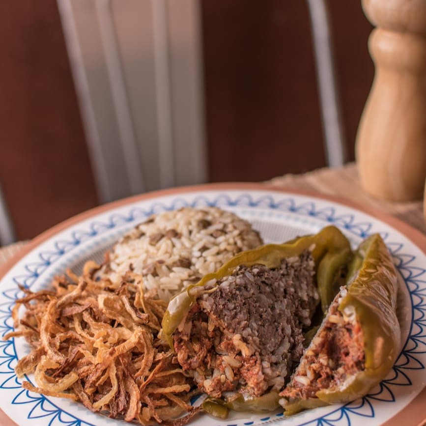 9. Arroz Com Lentilha + Kafta + Pimentão Recheado