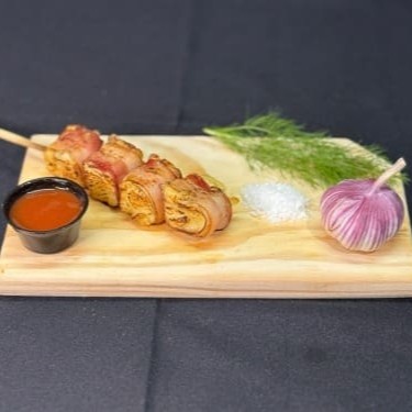 100g de Queijo Coalho envolvidos por Bacon e acompanhado de Sweet Chilli de Goiabada. (Peso In Natura)