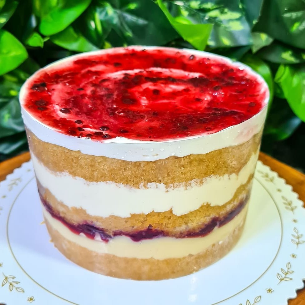 **Atenção: Produto Congelado Para Melhor Transporte** Bolo de baunilha recheado com brigadeiro branco, geléia de frutas vermelhas mousse de leite Ninho e coberto com chantininho. Produto Enviado Congelado. Serve até 6 fatias, aproximadamente 750grs. Tamanho 13x8cm.
