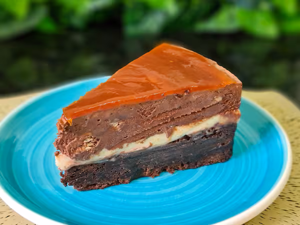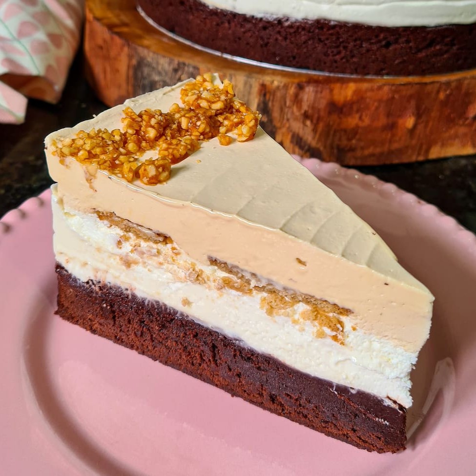 A perfeita combinação do brownie molhadinho, cremoça, mousse de chocolate meio amargo e finalizado com caramelo salgado. Dos deuses!!
