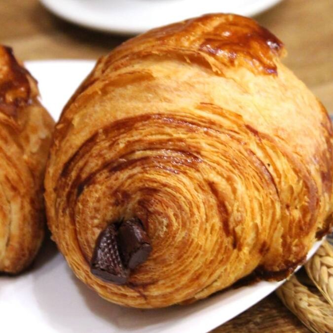 Massa folhada tradicional francesa recheada com dois bastonetes de chocolate belga Callebaut.