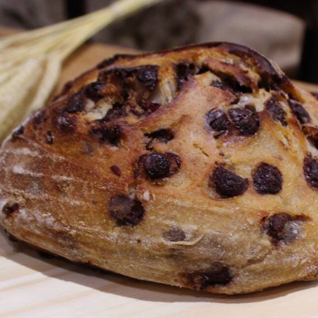 Pão sourdough de Crambery com gotas de chocolate de fermentação natural com aproximadamente 400 gramas.