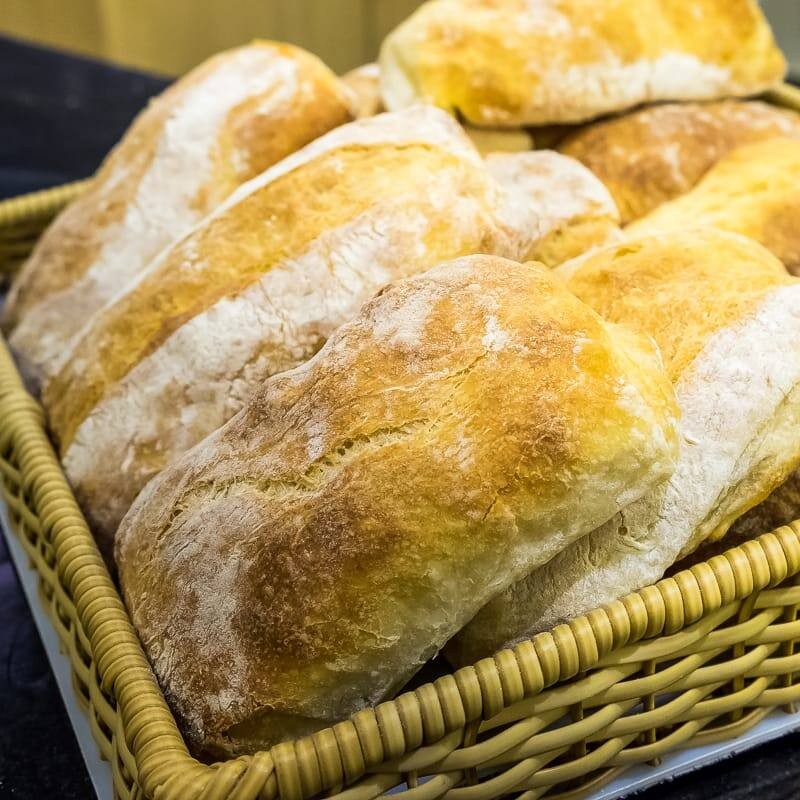 Ciabatta de Fermentação Natural com aproximadamente 110 gramas - A variação do peso da Ciabatta pode superar os 10%, devido o seu processo de fabricação artesanal.