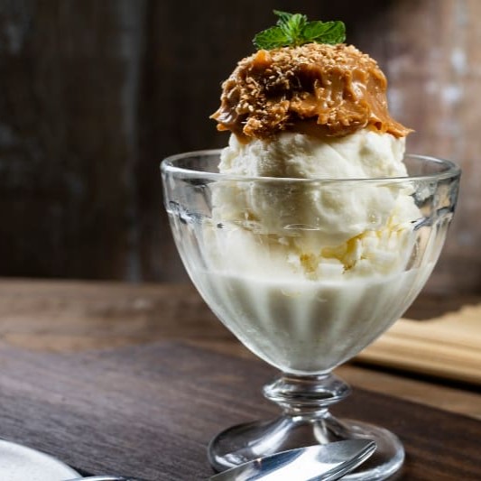 Sorvete De Tapioca Com Doce De Leite E Coco Ralado