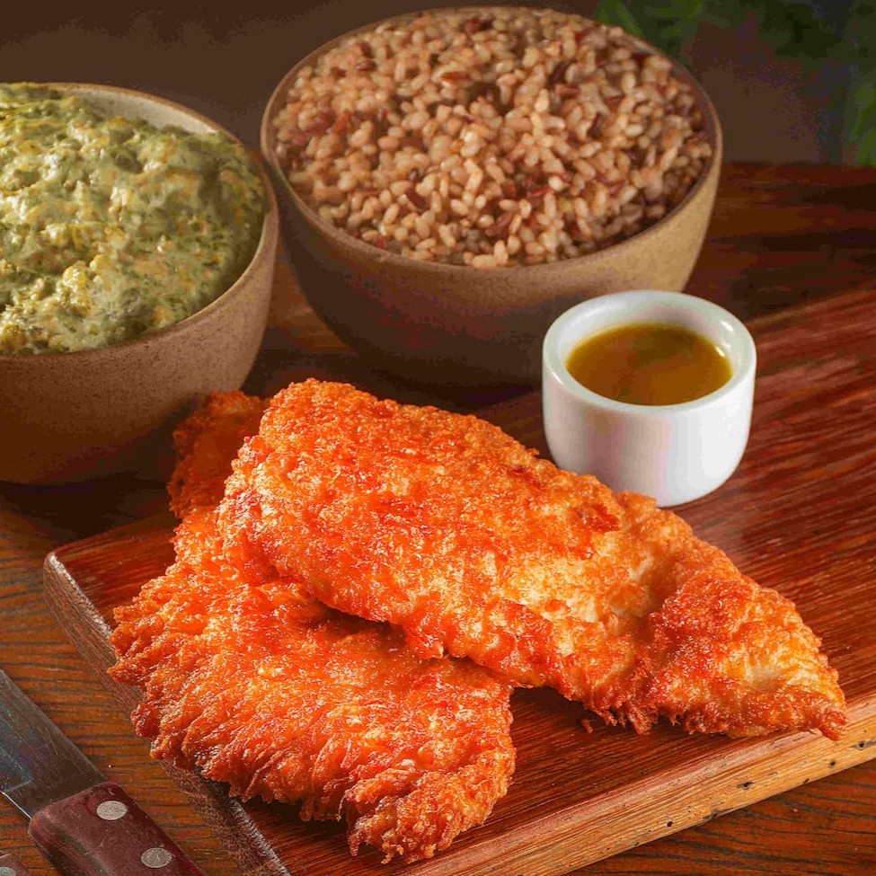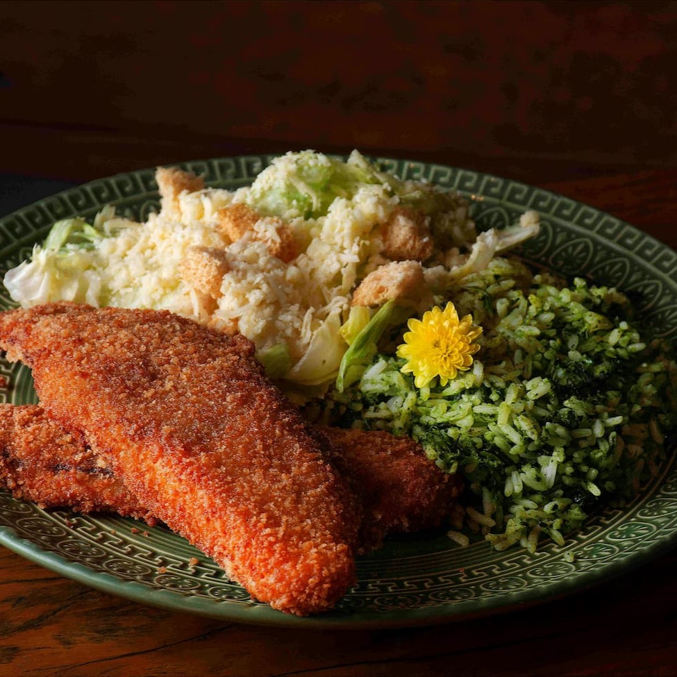 Filé de peixe com crosta crocante, grelhado na chapa até ficar dourado e suculento. Servido com um acompanhamento à sua escolha e finalizado com nosso molho especial da casa, que realça ainda mais o sabor do prato.