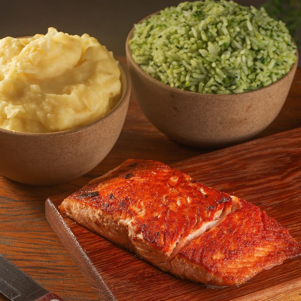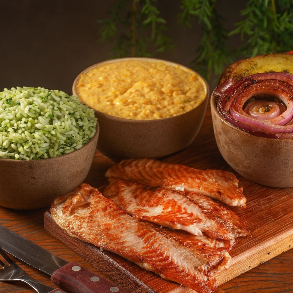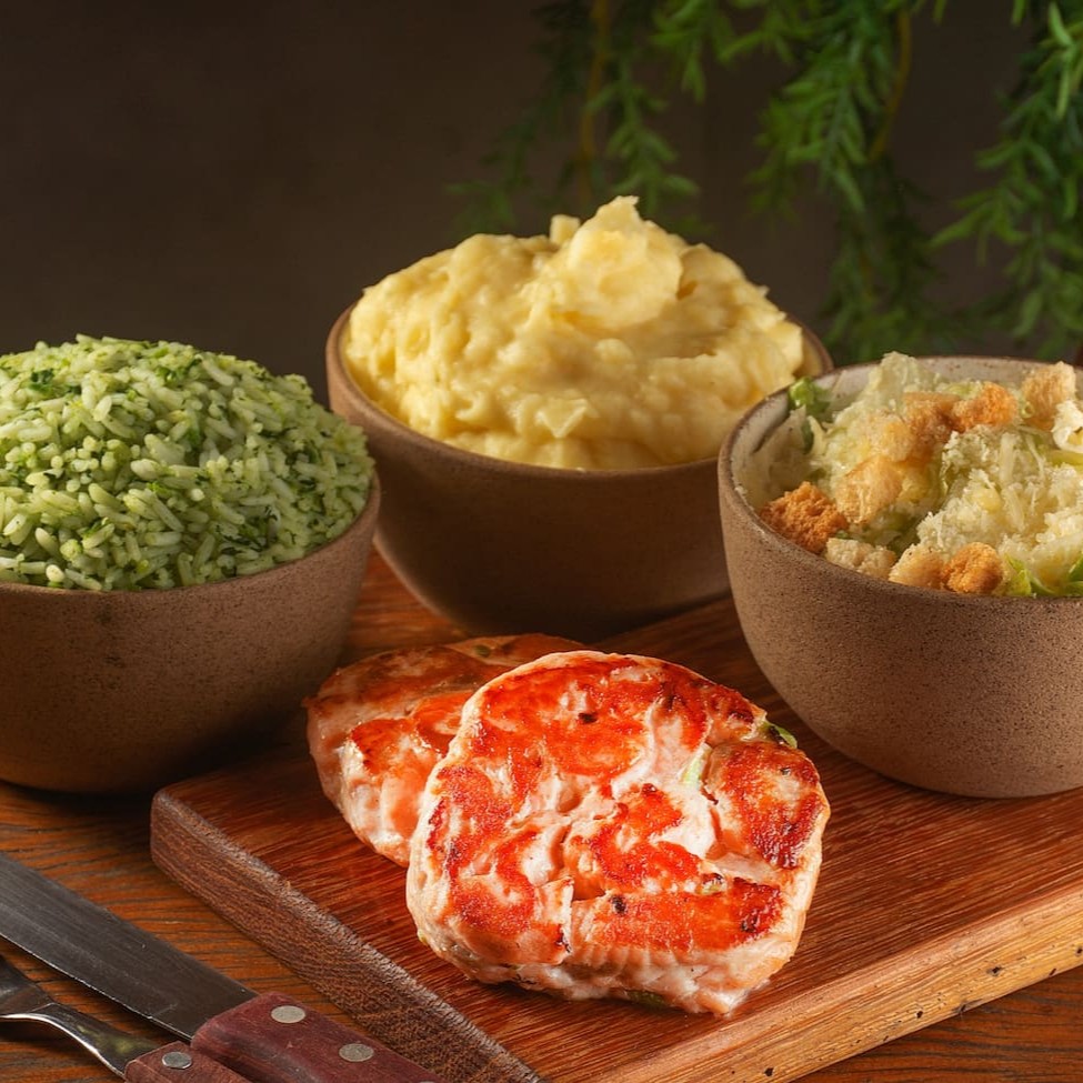 A leveza do Salmão grelhado acompanhado de 2 complementos a sua escolha.