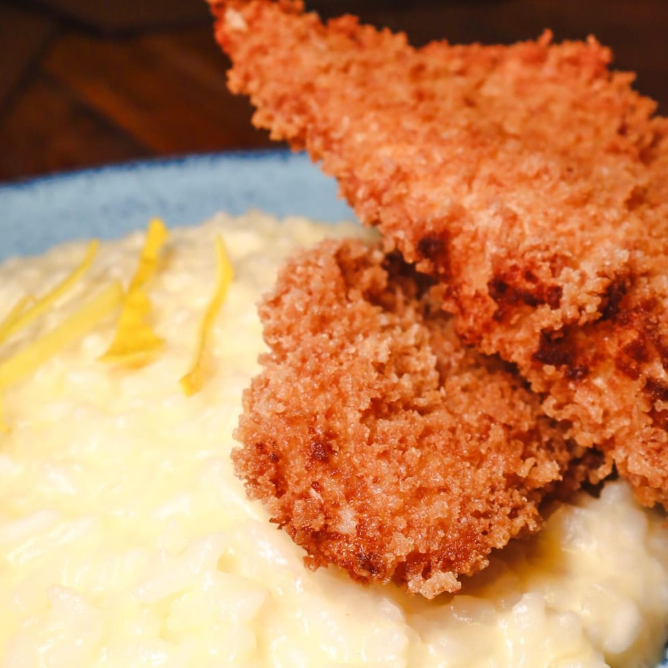 Peixe Branco Empanado na Farinha Panko, Acompanhado de Risoto de Limão Siciliano e Molho Teriaky