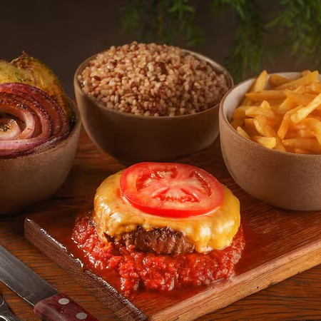Deliciosamente preparado com Filés Mignon Macios e Suculentos, cobertos com uma generosa camada de Queijo Derretido e Molho de Tomate encorpado, cada garfada é uma explosão de sabores