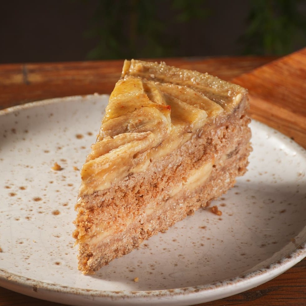 Clássica e Deliciosa Fatia de Torta Integral de Banana daquelas com gostinho de casa de vó! Ótima opção de lanche, a Torta de Banana também é ideal para o Café da Manhã ou Lanche da Tarde.