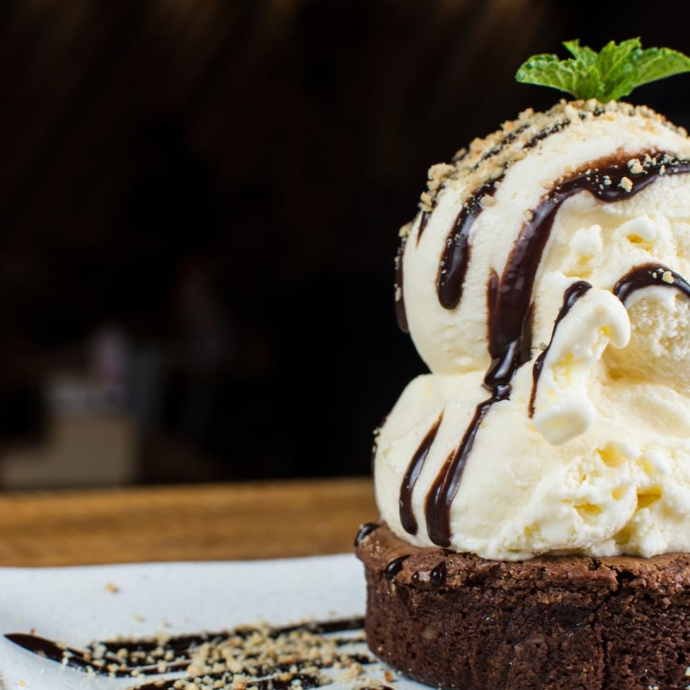 Acompanhado de Sorvete de Creme e calda de Chocolate e Farofa de Castanha.